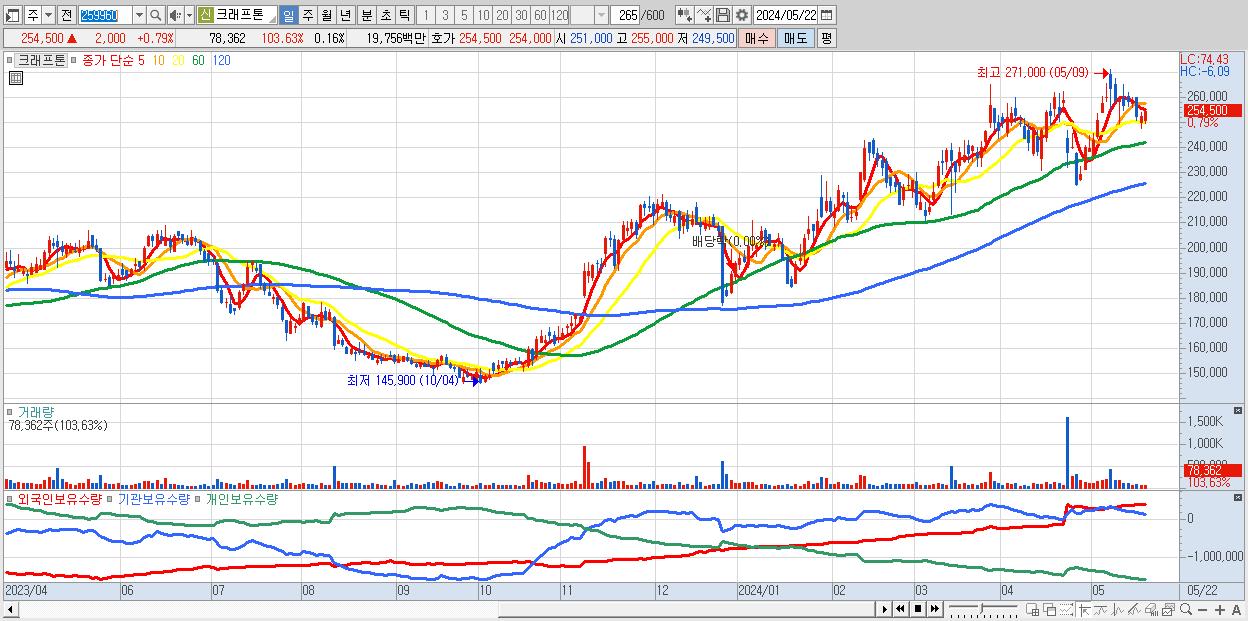 - 크래프톤 (254,500원 ▲ 0.79% , 시총: 123,088억, 외국인 순매수 거래금:74억)