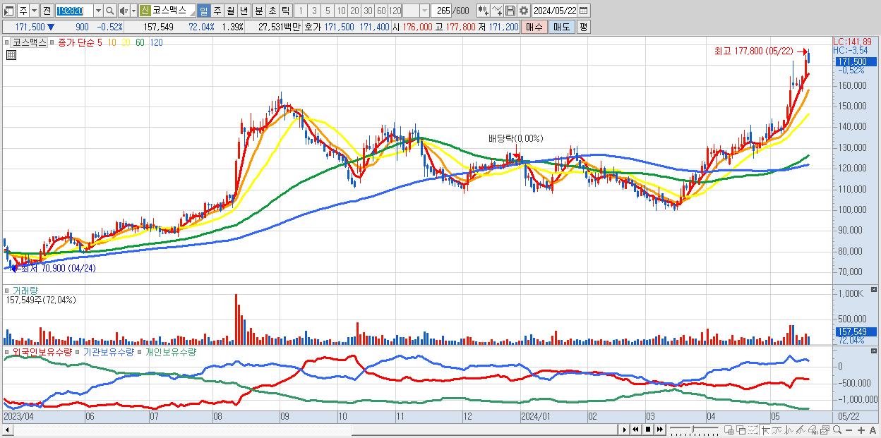 - 코스맥스 (171,500원 ▼ -0.52% , 시총: 19,464억, 외국인 순매수 거래금:51억)