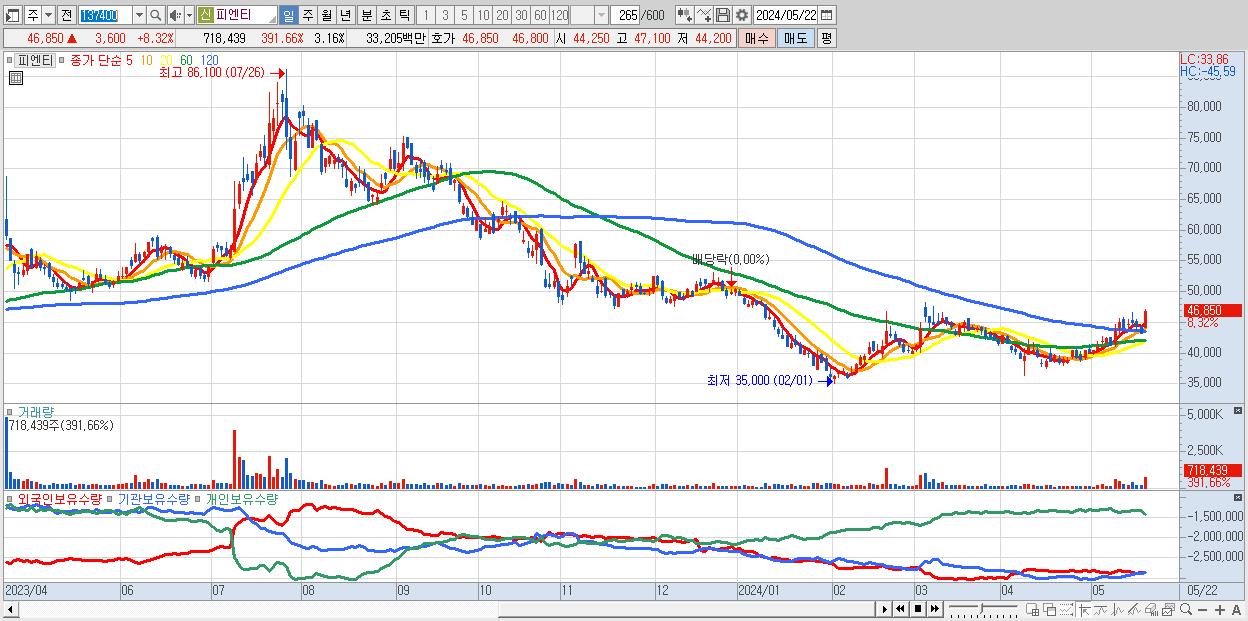30.피엔티 46,850원 ▲ 8.32% (KOSDAQ, 137400)