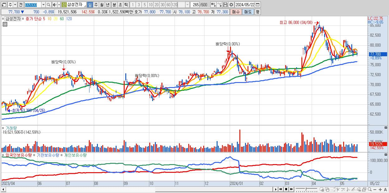 1.삼성전자 77,700원 ▼ -0.89% (KOSPI, 005930)