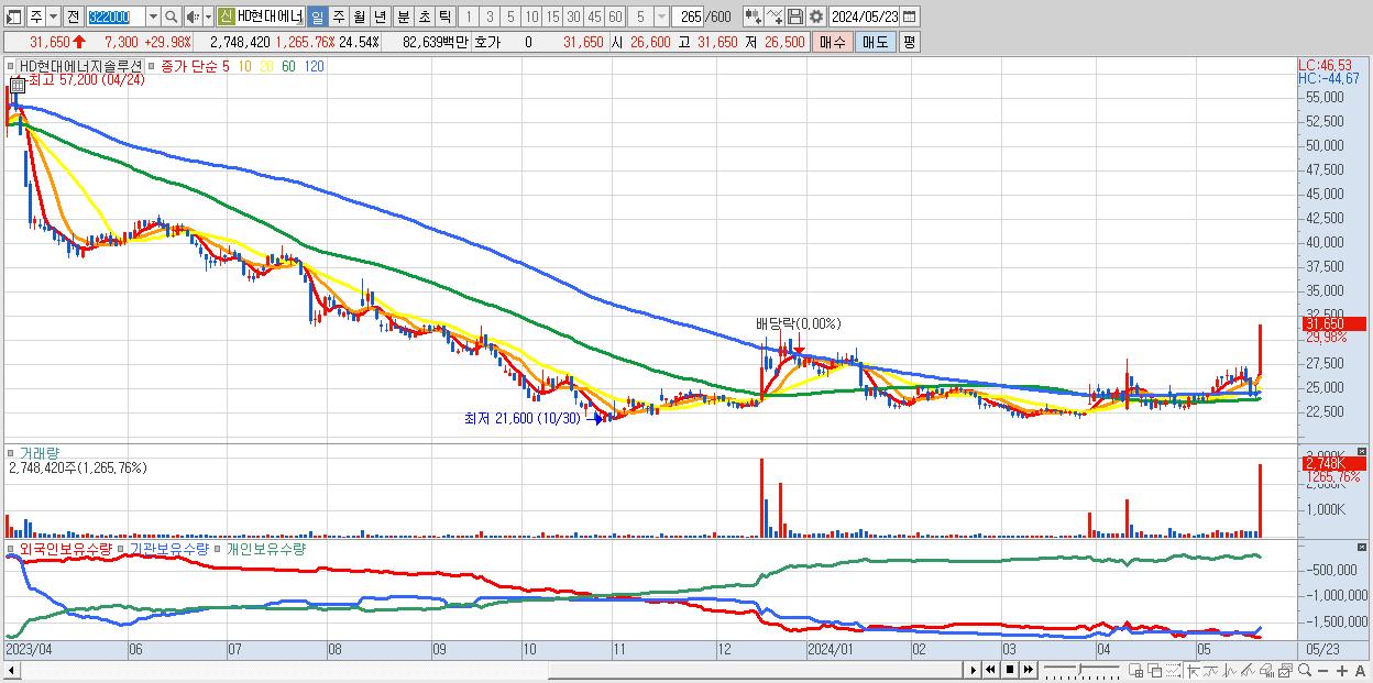 3.HD현대에너지솔루션 31,650원 ▲ 29.98% (KOSPI, 322000)