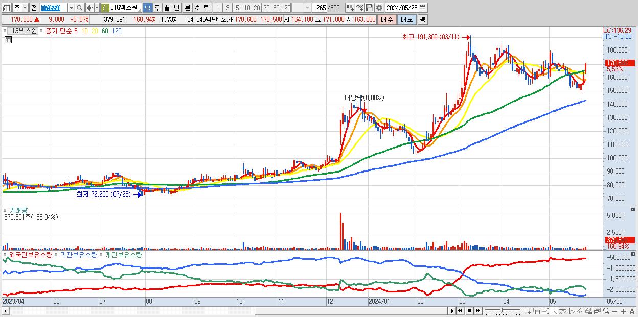 - LIG넥스원 (170,600원 ▲ 5.57% , 시총: 37,532억, 외국인 순매수 거래금:116억)