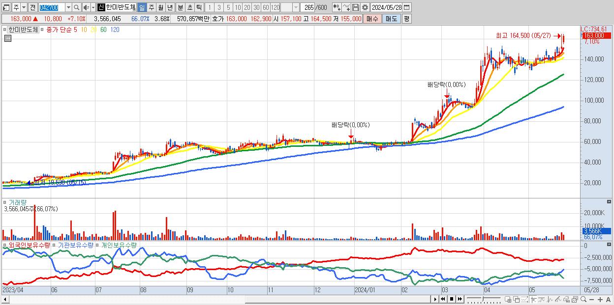- 한미반도체 (163,000원 ▲ 7.1% , 시총: 158,100억, 외국인 순매수 거래금:475억)