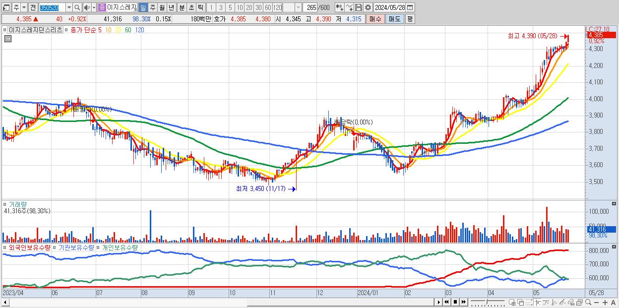 52주최고가(4,390원) 대비 -0.11% (2일 연속 갱신중)