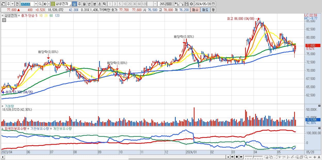 1.삼성전자 77,600원 ▲ 0.52% (KOSPI, 005930)
