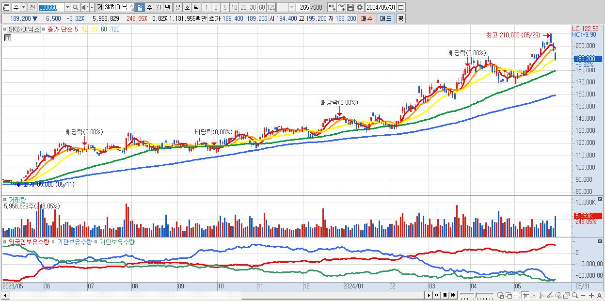 2.SK하이닉스 189,200원 ▼ -3.32% (KOSPI, 000660)