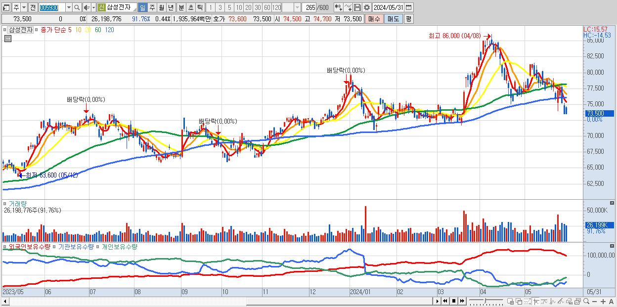 1.삼성전자 73,500원 0% (KOSPI, 005930)