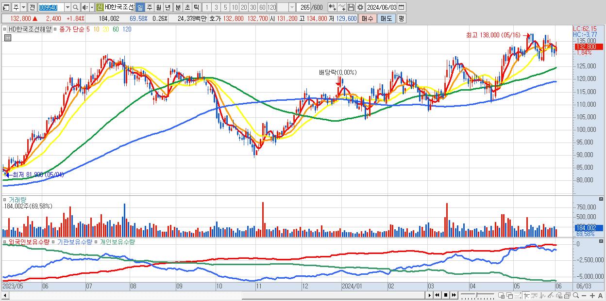 30.HD한국조선해양 132,800원 ▲ 1.84% (KOSPI, 009540)