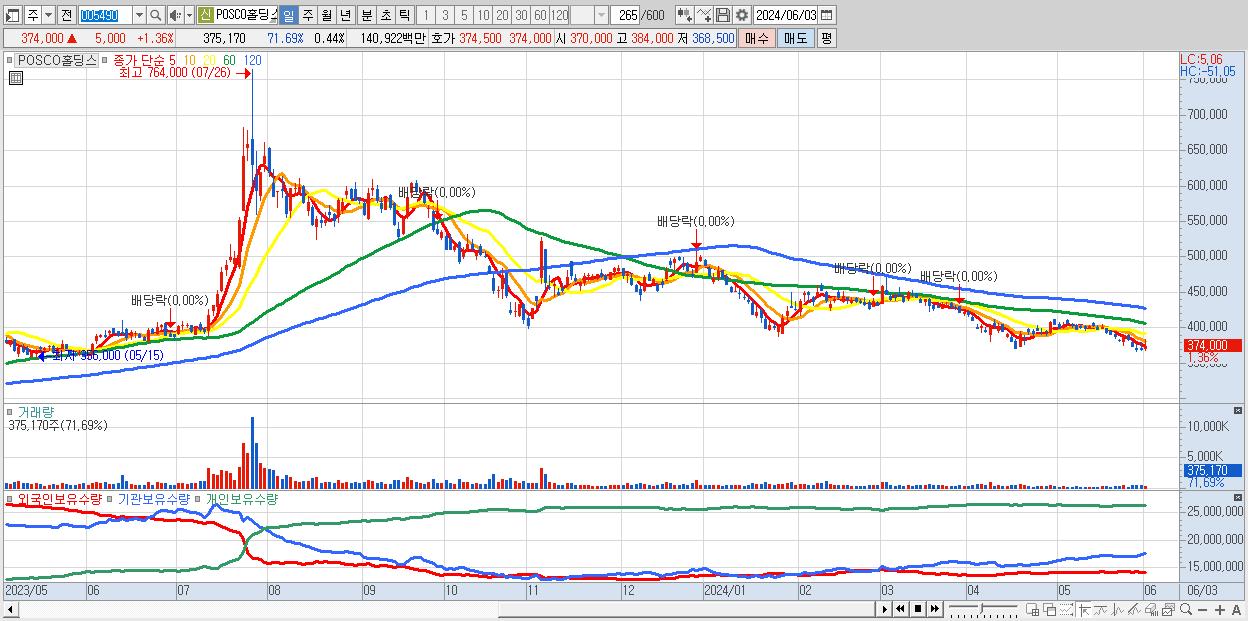 - POSCO홀딩스 (374,000원 ▲ 1.36% , 시총: 316,296억, 외국인 순매수 거래금:95억)