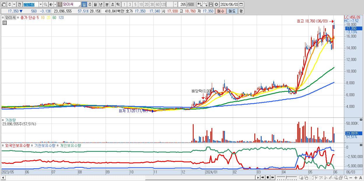 - 와이씨 (17,350원 ▼ -3.13% , 시총: 14,235억, 외국인 순매수 거래금:156억)
