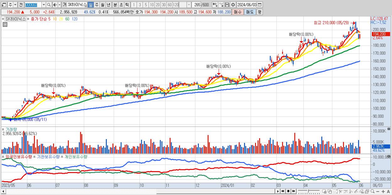 - SK하이닉스 (194,200원 ▲ 2.64% , 시총: 1,413,781억, 외국인 순매수 거래금:919억)