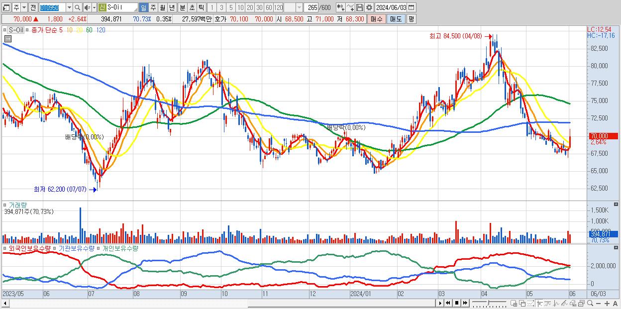 - S-Oil (70,000원 ▲ 2.64% , 시총: 78,808억, 외국인 순매수 거래금:56억)