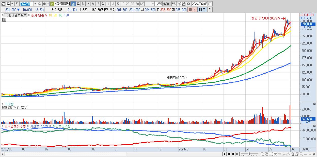 - HD현대일렉트릭 (291,000원 ▼ -3.32% , 시총: 104,897억, 외국인 순매수 거래금:196억)