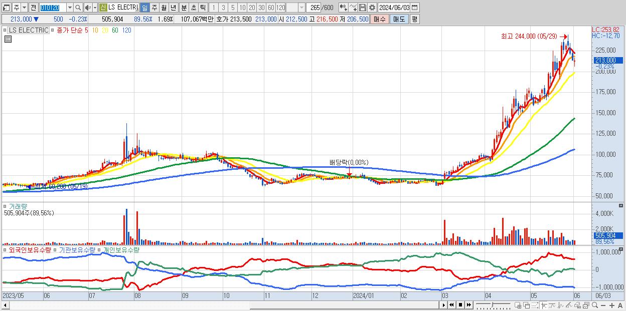 - LS ELECTRIC (213,000원 ▼ -0.23% , 시총: 63,900억, 외국인 순매수 거래금:166억)