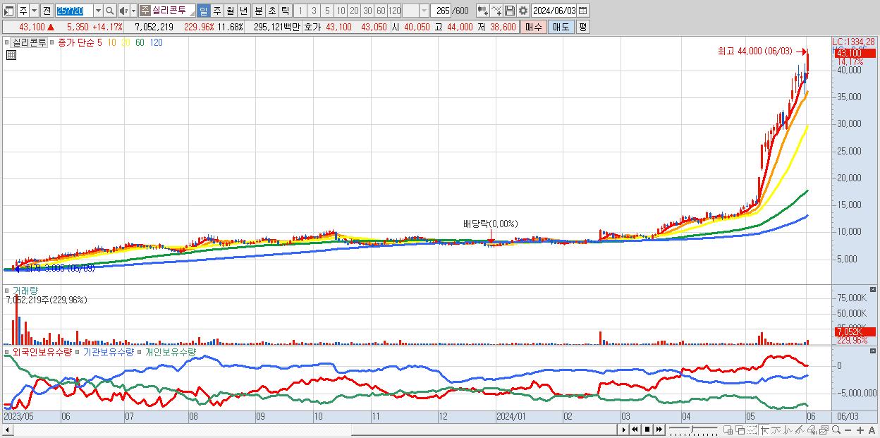 - 실리콘투 (43,100원 ▲ 14.17% , 시총: 26,028억, 외국인 순매수 거래금:145억)