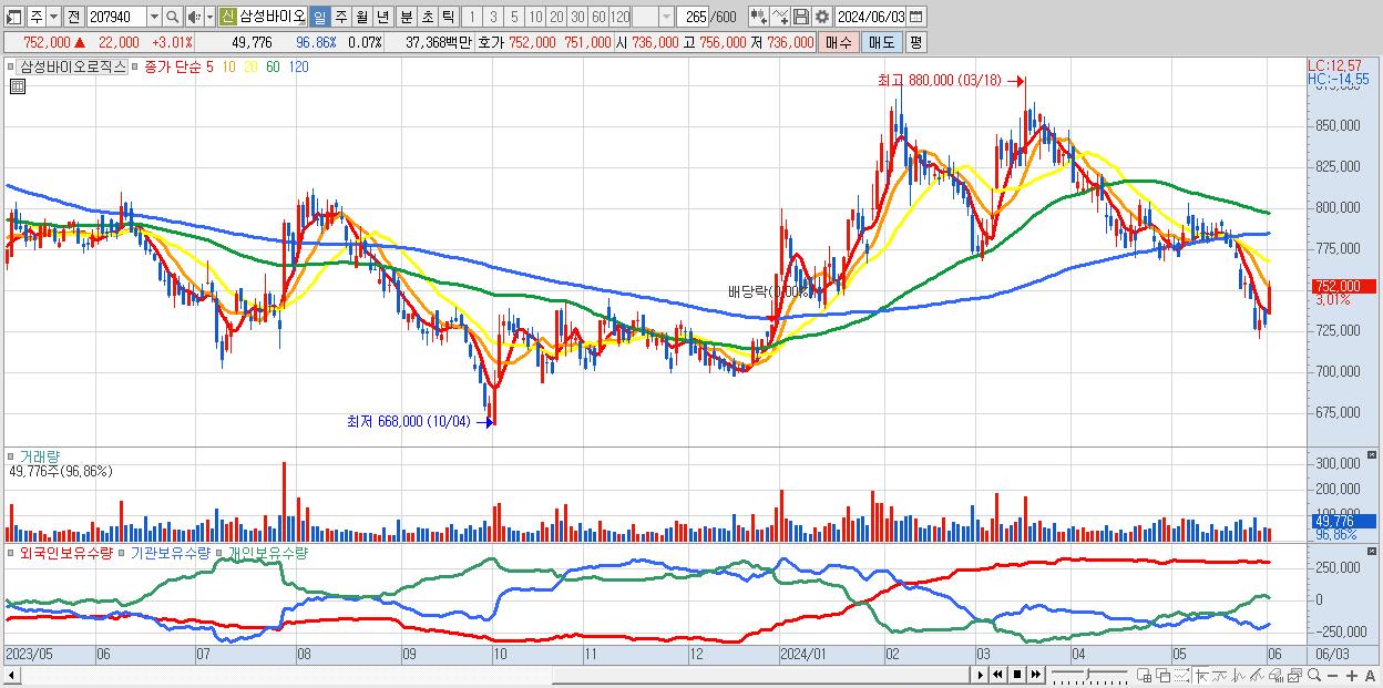 - 삼성바이오로직스 (752,000원 ▲ 3.01% , 시총: 535,228억, 외국인 순매수 거래금:63억)