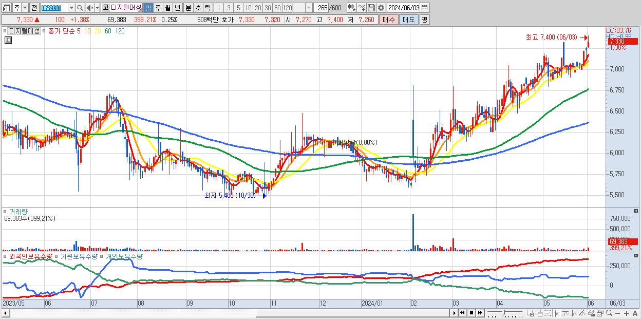 디지털대성 7,330원 ▲ 1.38% (KOSDAQ, 068930)