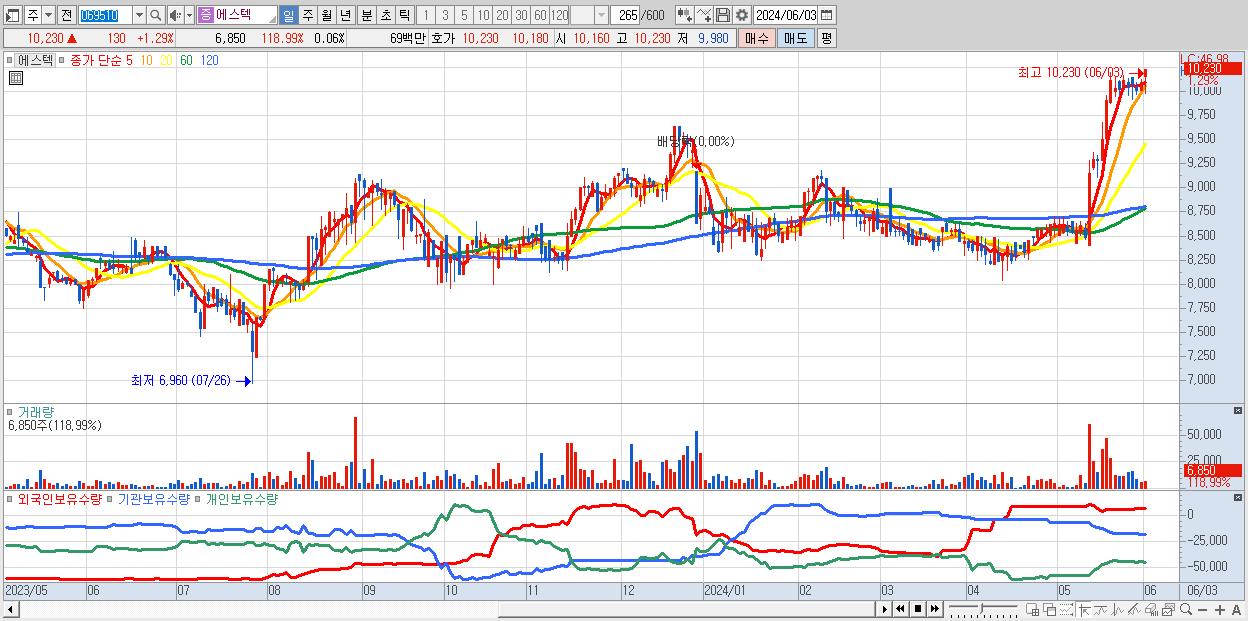 에스텍 10,230원 ▲ 1.29% (KOSDAQ, 069510)