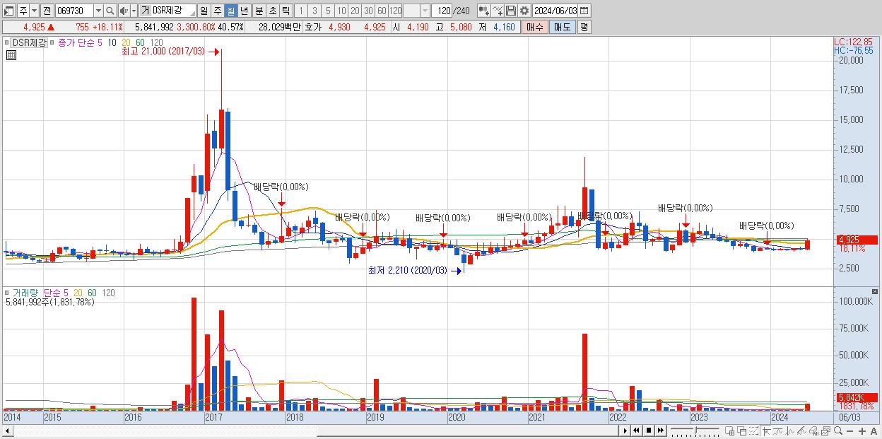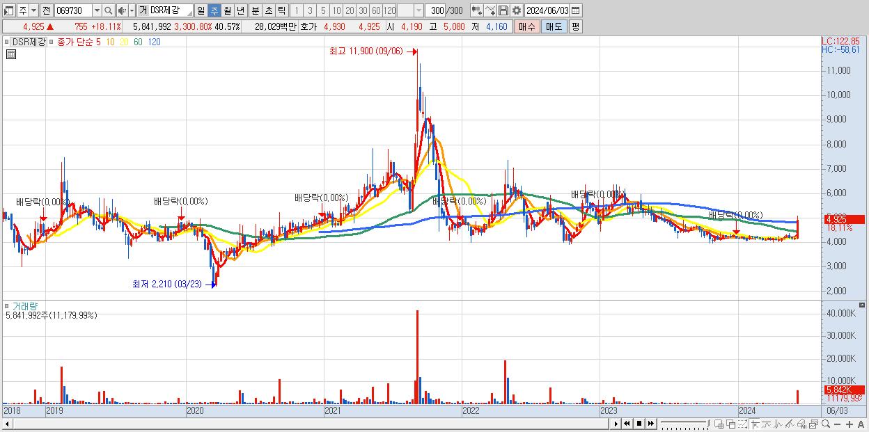 - DSR제강 (4,925원 , 시총: 709억, 거래량: 5,841,992, 거래대금:280억)