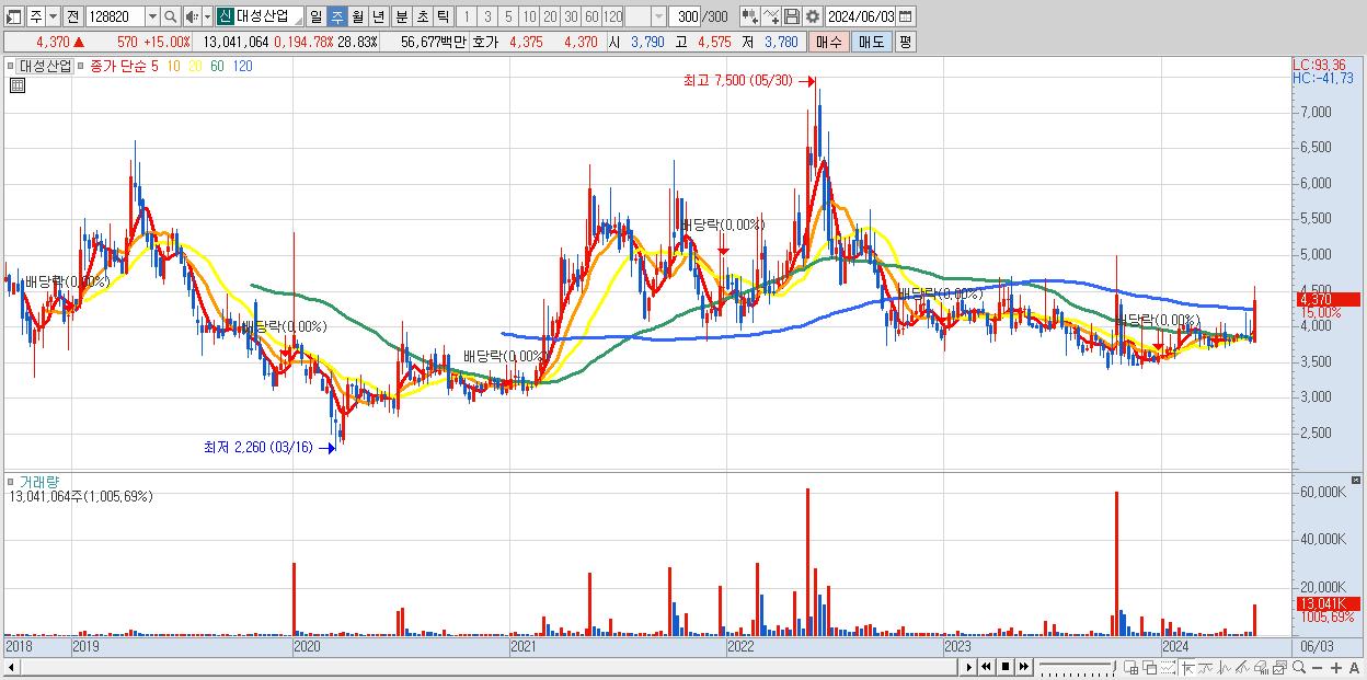 14.대성산업 4,370원 ▲ 15% (KOSPI, 128820)