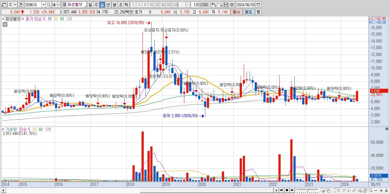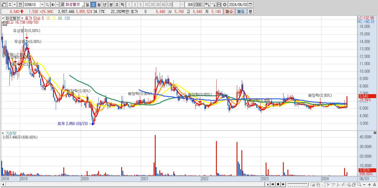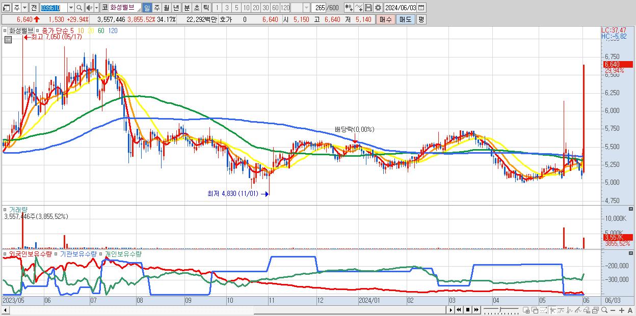- 화성밸브 (6,640원 , 시총: 691억, 거래량: 3,557,446, 거래대금:223억)