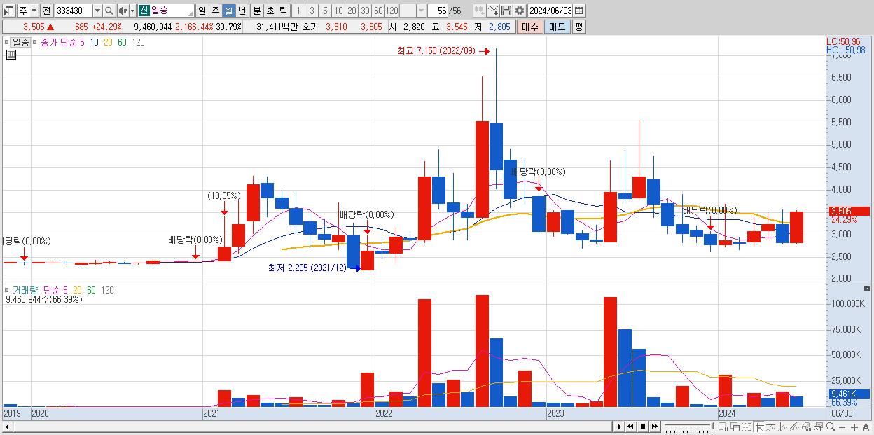 - 일승 (3,505원 , 시총: 1,077억, 거래량: 9,460,944, 거래대금:314억)