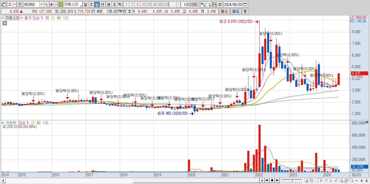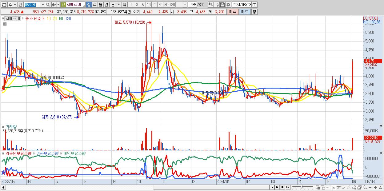- 지에스이 (4,435원 , 시총: 1,330억, 거래량: 32,220,313, 거래대금:1,356억)