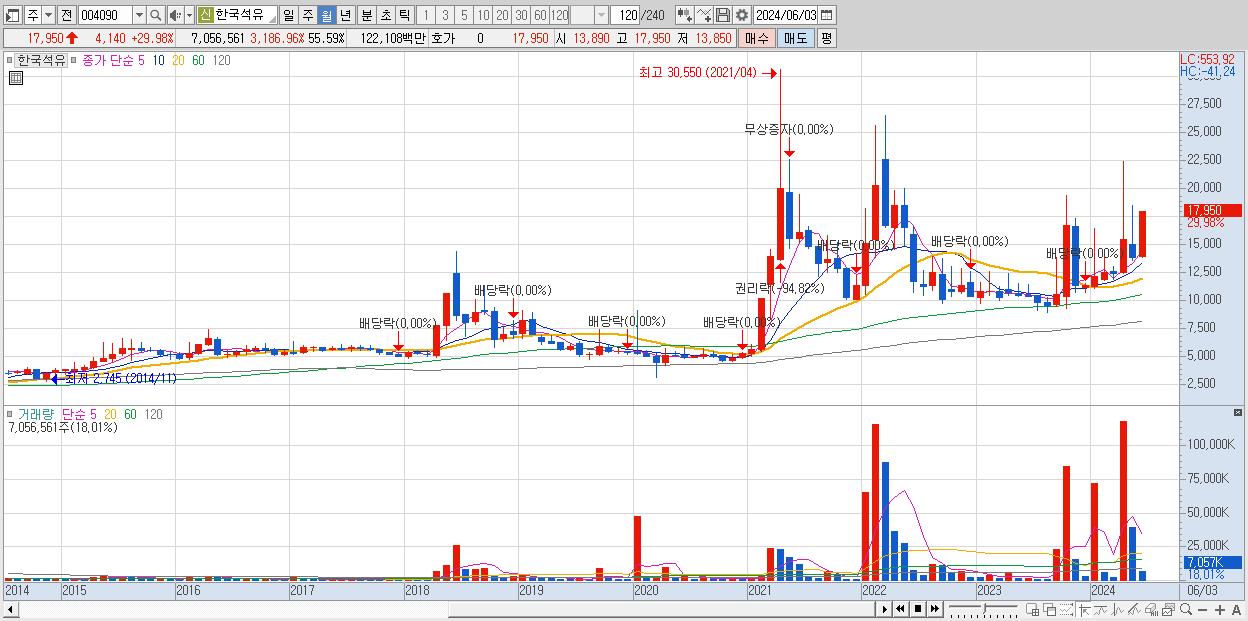 2.한국석유 17,950원 ▲ 29.98% (KOSPI, 004090)