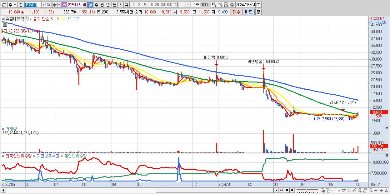 - 휴림네트웍스 (10,640원 ▲ 11.53% , 시총: 232억, 거래량: 332,704, 거래대금:36억)