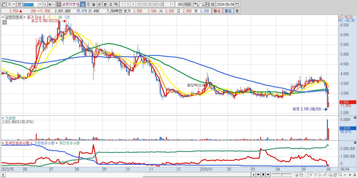 - 삼영이엔씨 (2,550원 ▲ 11.35% , 시총: 336억, 거래량: 2,831,868, 거래대금:73억)