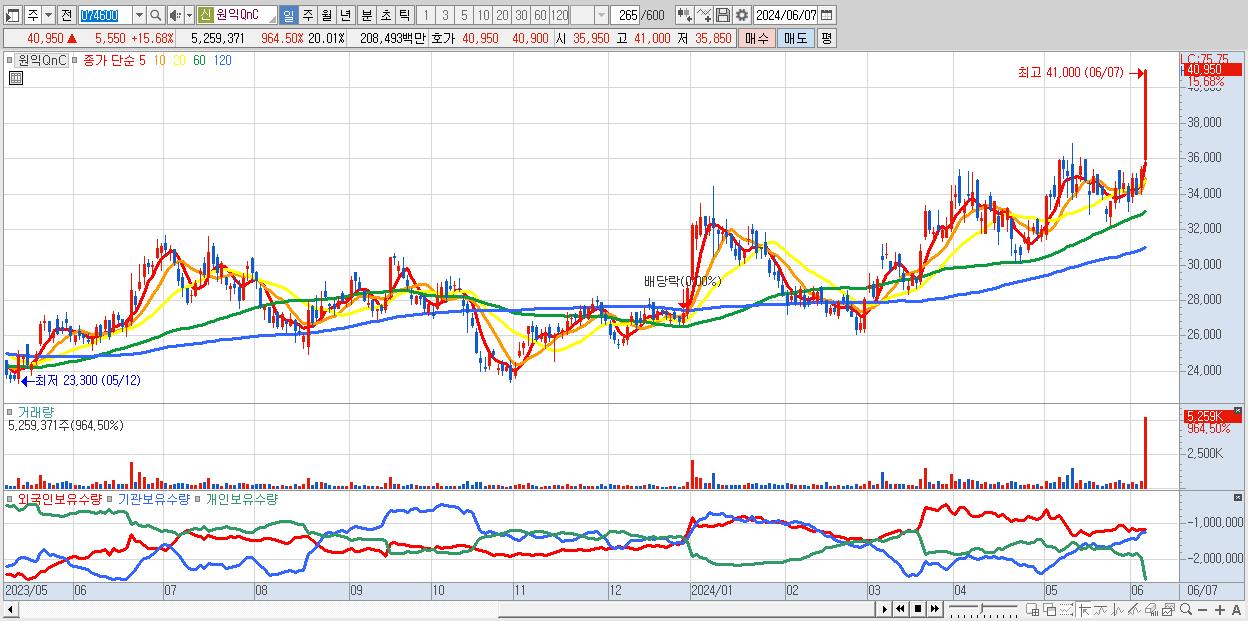- 원익QnC (40,950원 ▲ 15.68% , 시총: 10,765억, 거래량: 5,259,371, 거래대금:2,085억, KOSDAQ)