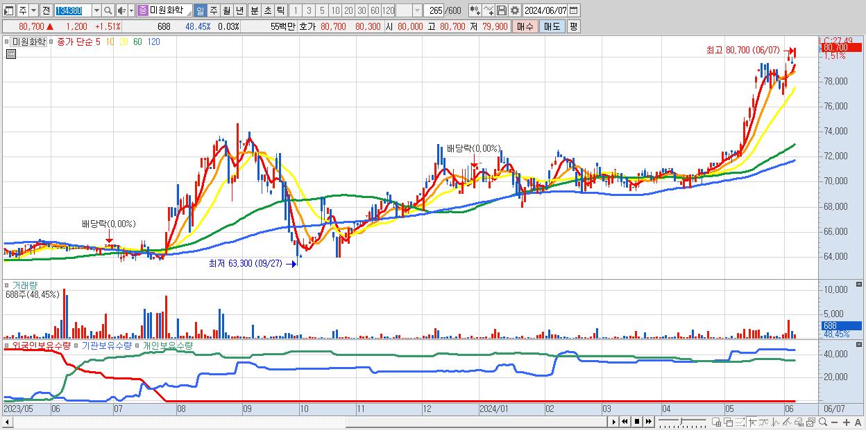 미원화학 80,700원 ▲ 1.51% (KOSPI, 134380)
