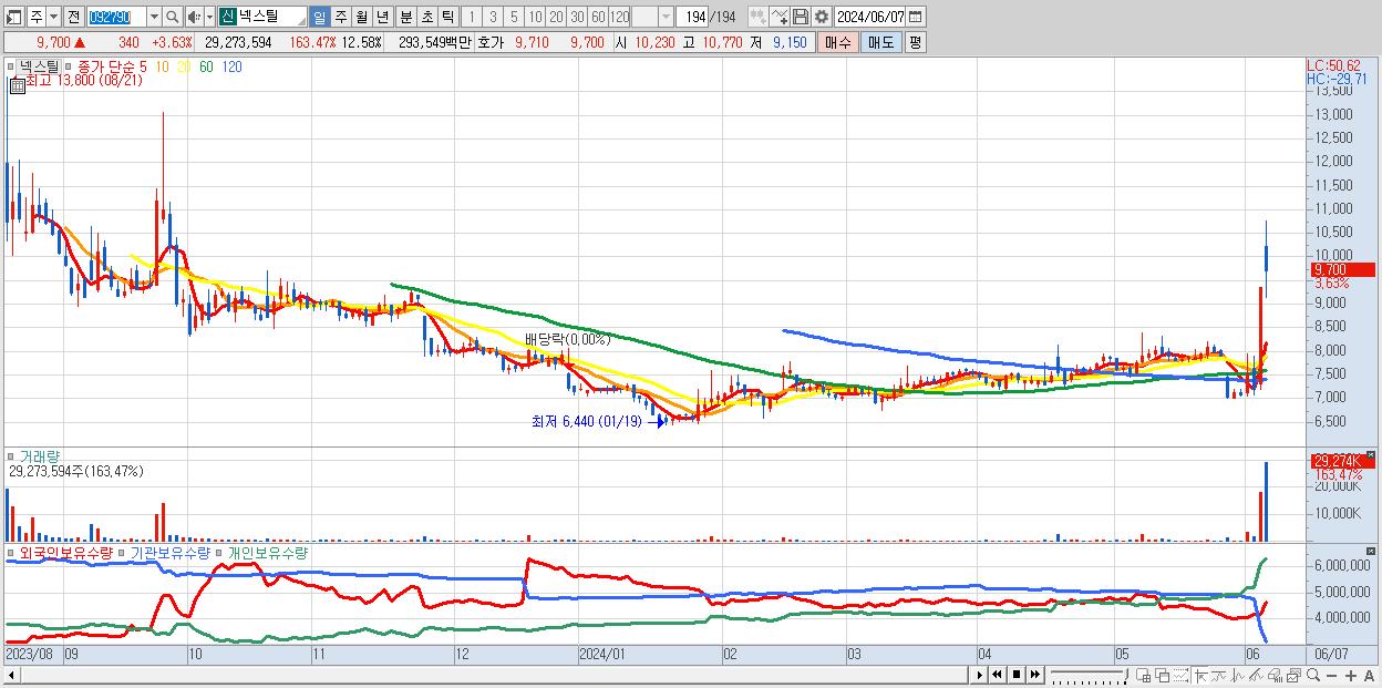 - 넥스틸 (9,700원 ▲ 3.63% , 시총: 2,522억, 거래량: 29,273,594, 거래대금:2,935억)
