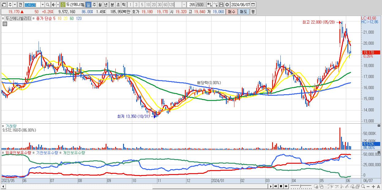 - 두산에너빌리티 (19,170원 ▲ 0.26% , 시총: 122,796억, 거래량: 9,572,160, 거래대금:1,860억)