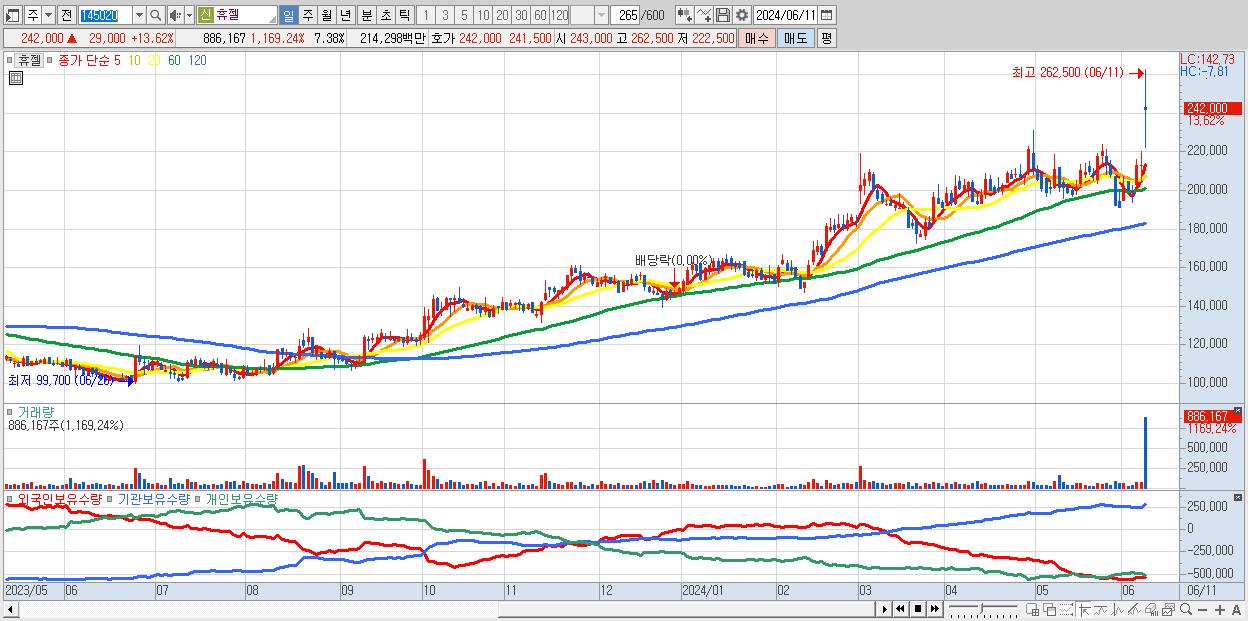 휴젤 242,000원 ▲ 13.62% (KOSDAQ, 145020)