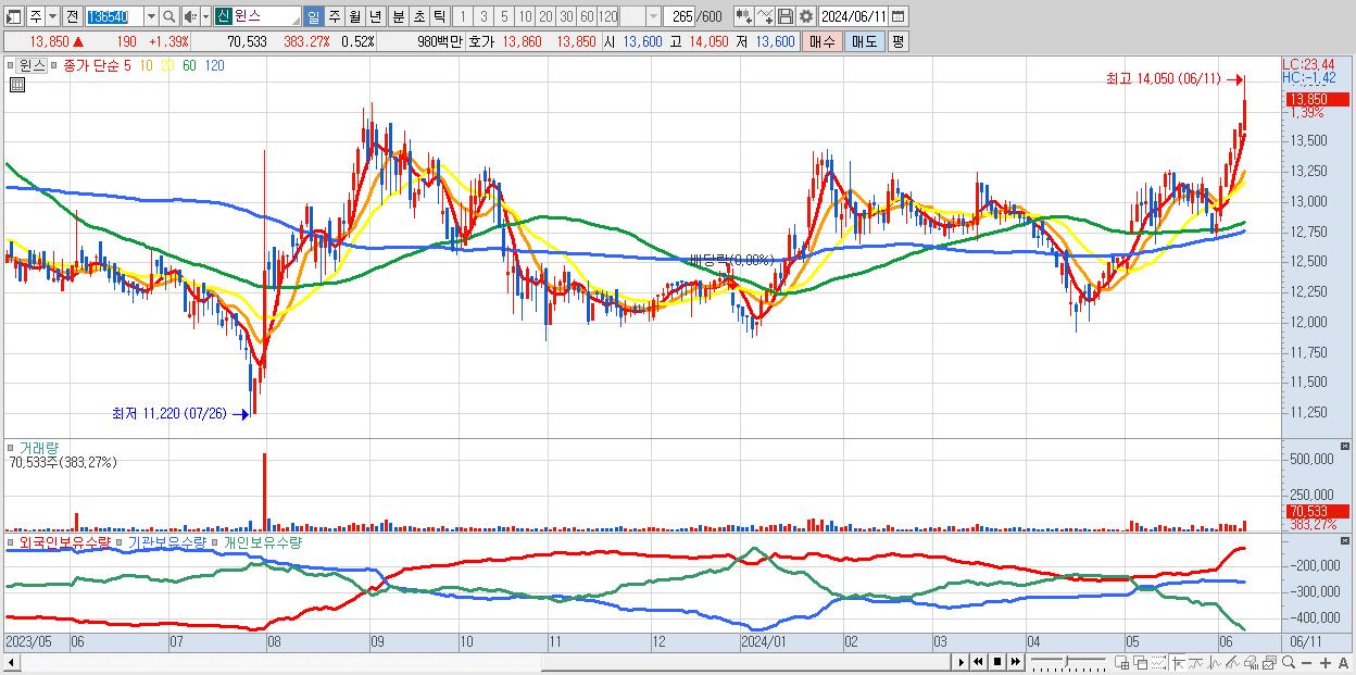 윈스 13,850원 ▲ 1.39% (KOSDAQ, 136540)