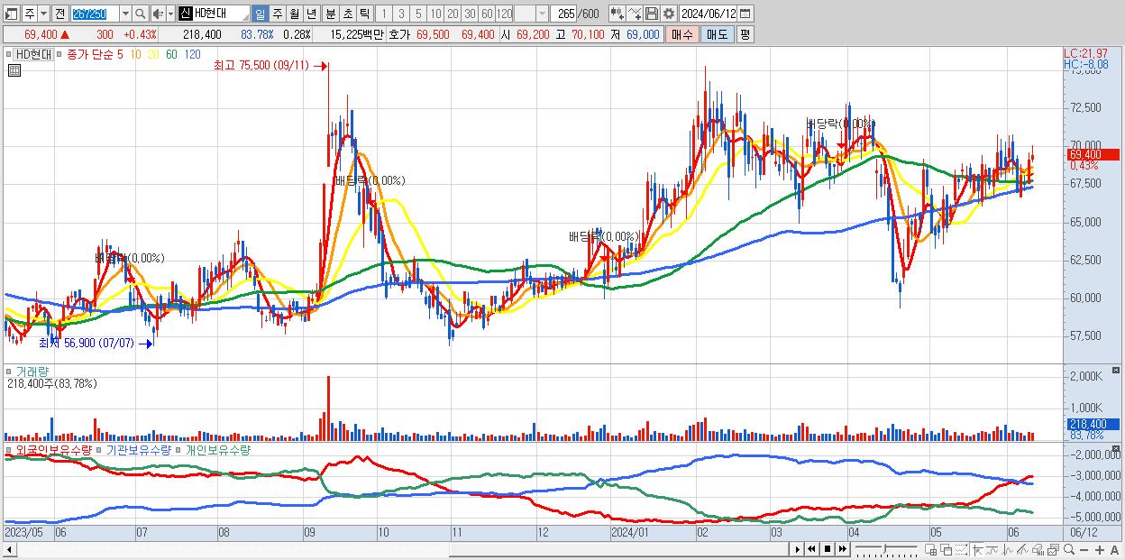 - HD현대 (69,400원 ▲ 0.43% , 시총: 54,821억, 외국인 순매수 거래금:50억)
