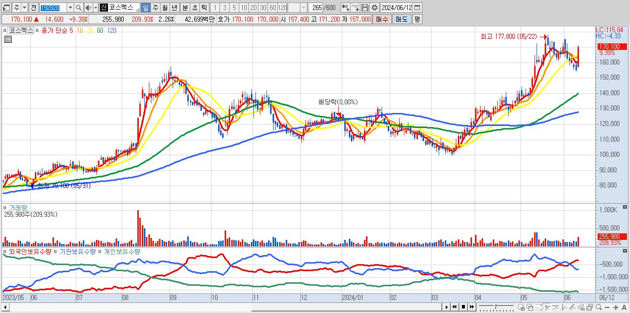 역사적최고가(175,500원) 대비 -0.91% (8일만에 재진입)