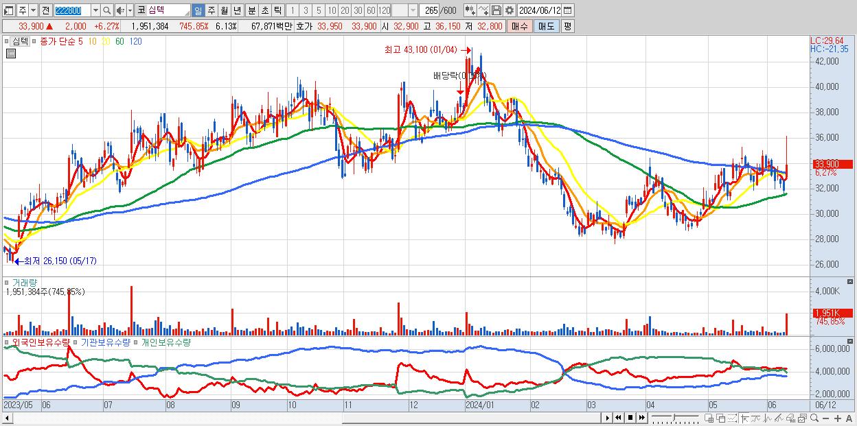 - 심텍 (33,900원 ▲ 6.27% , 시총: 10,799억, 외국인 순매수 거래금:93억)