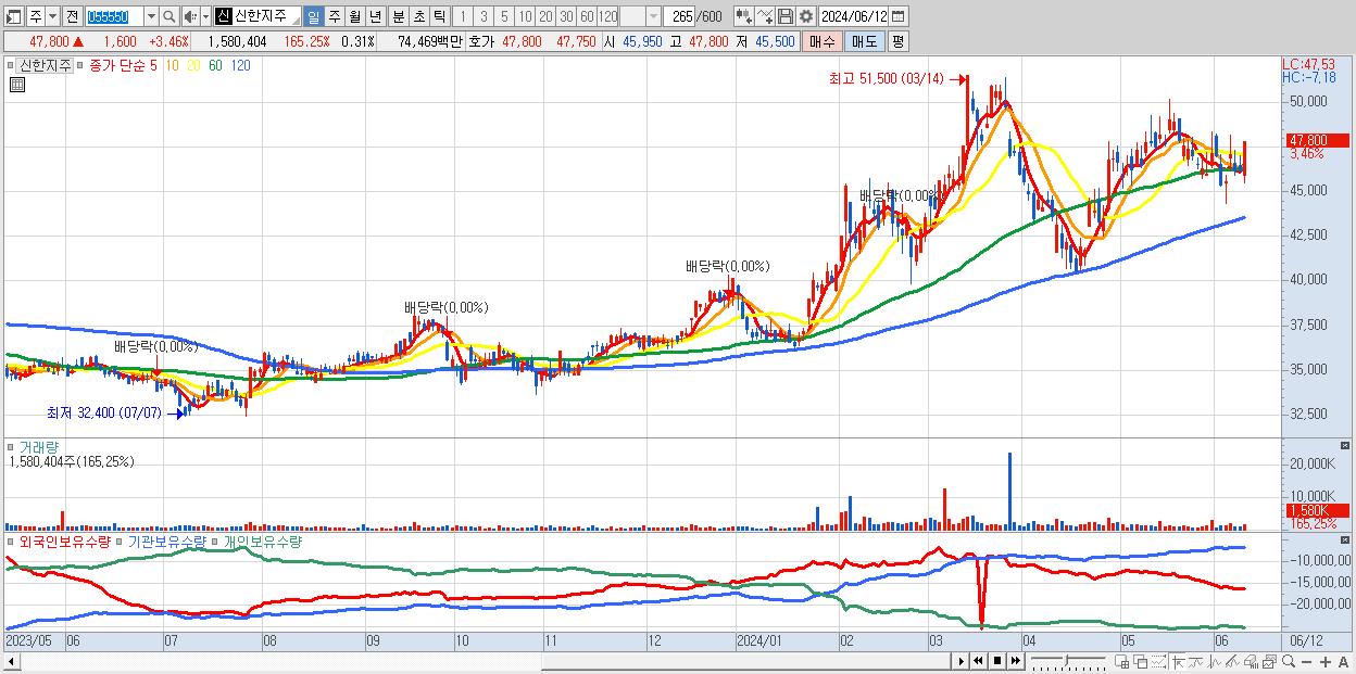- 신한지주 (47,800원 ▲ 3.46% , 시총: 243,490억, 외국인 순매수 거래금:108억)