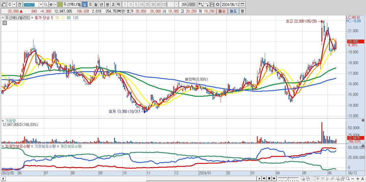 - 두산에너빌리티 (20,000원 ▲ 4.38% , 시총: 128,112억, 외국인 순매수 거래금:100억)