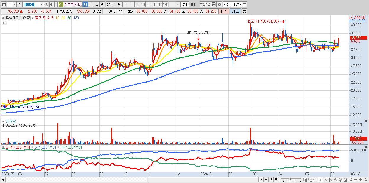 - 주성엔지니어링 (36,050원 ▲ 6.5% , 시총: 17,394억, 외국인 순매수 거래금:100억)