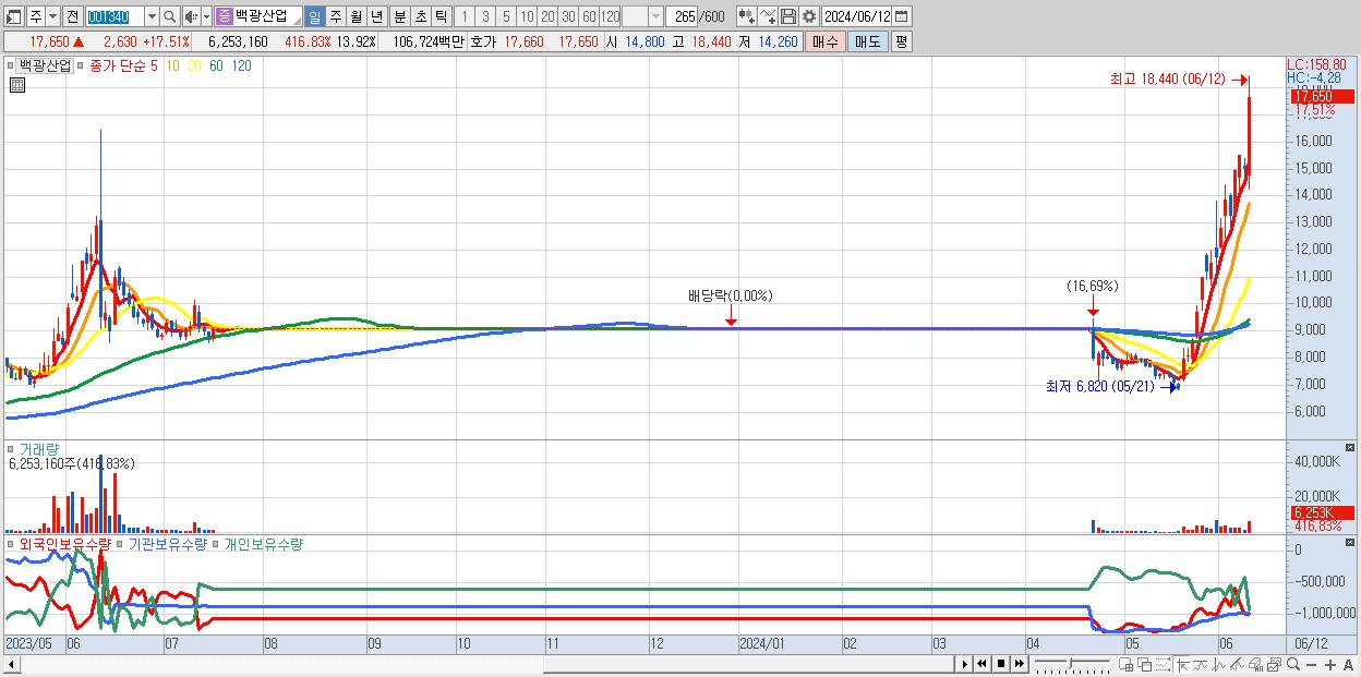 - 백광산업 (17,650원 ▲ 17.51% , 시총: 7,928억, 외국인 순매수 거래금:90억)