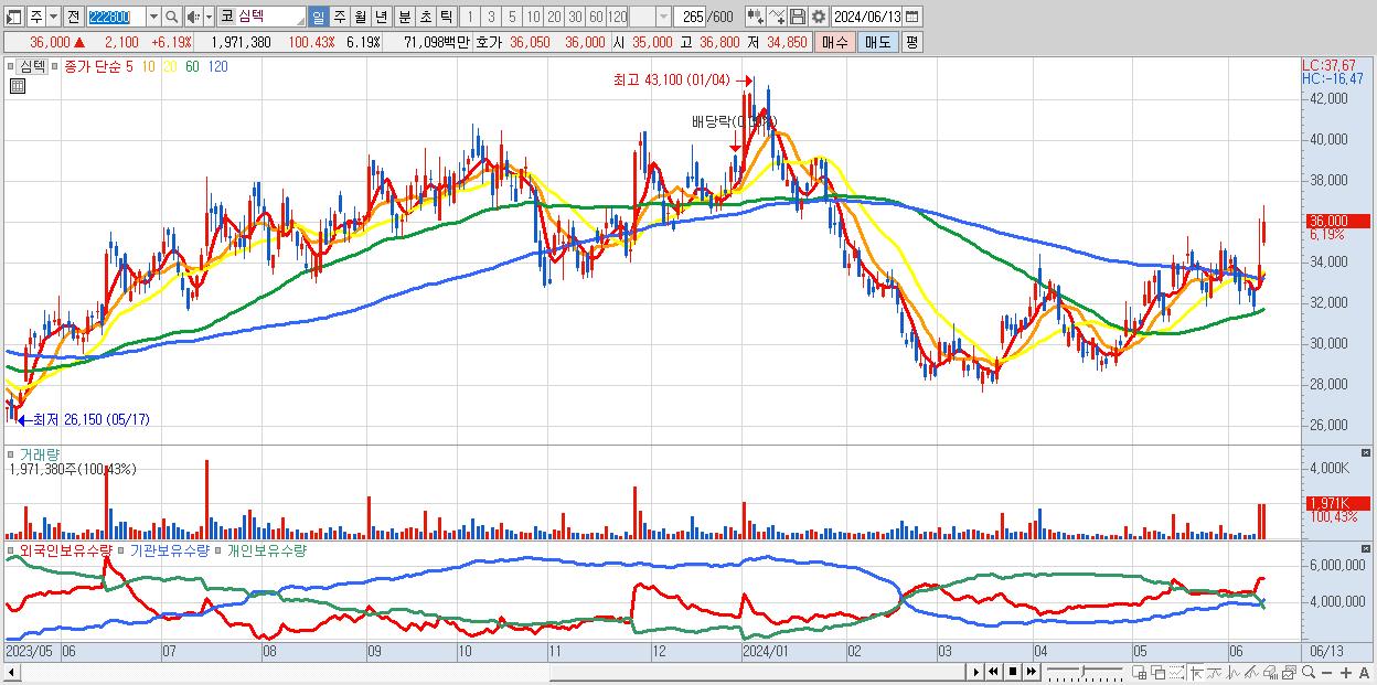 - 심텍 (36,000원 ▲ 6.19% , 시총: 11,467억, 외국인 순매수 거래금:81억)