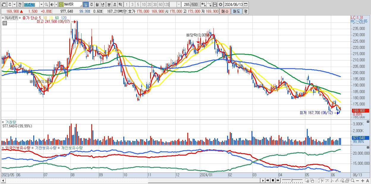 - NAVER (169,900원 ▲ 0.89% , 시총: 275,932억, 외국인 순매수 거래금:175억)