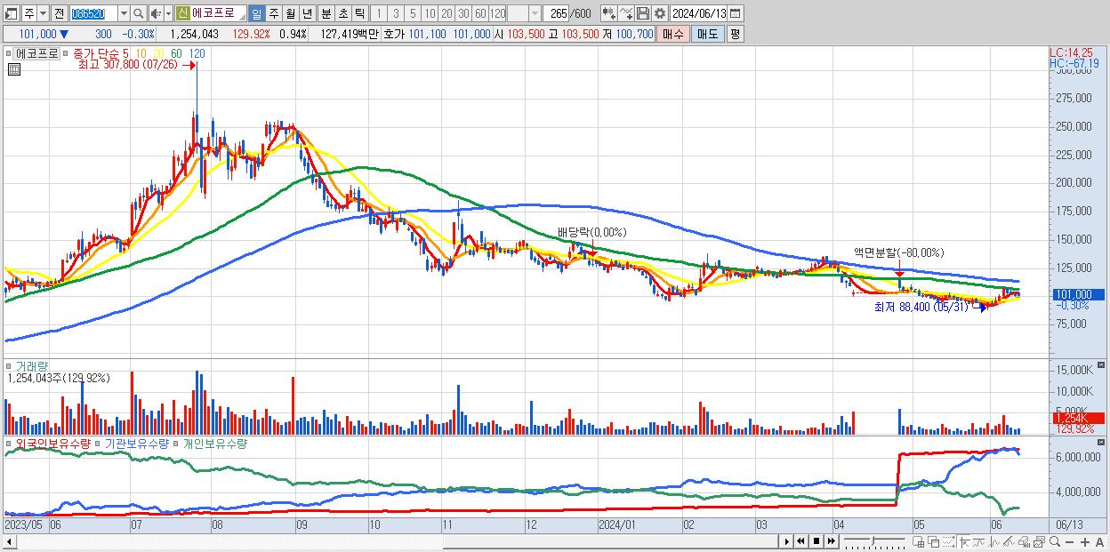 - 에코프로 (101,000원 ▼ -0.3% , 시총: 134,470억, 외국인 순매수 거래금:118억)