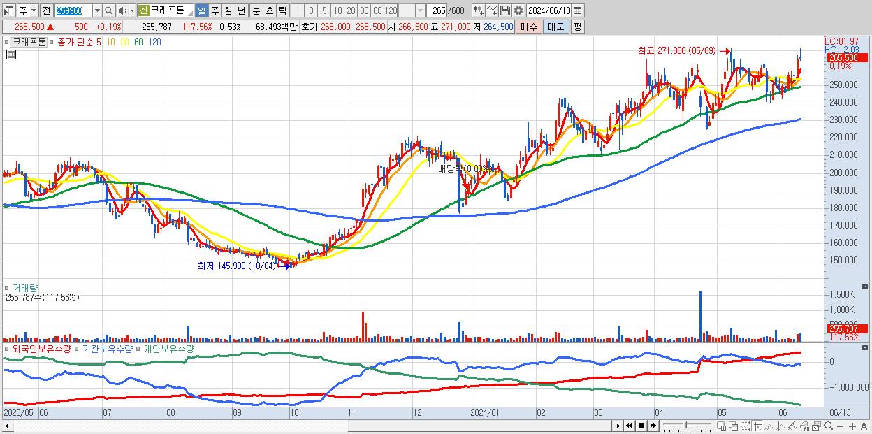 - 크래프톤 (265,500원 ▲ 0.19% , 시총: 127,143억, 외국인 순매수 거래금:267억)