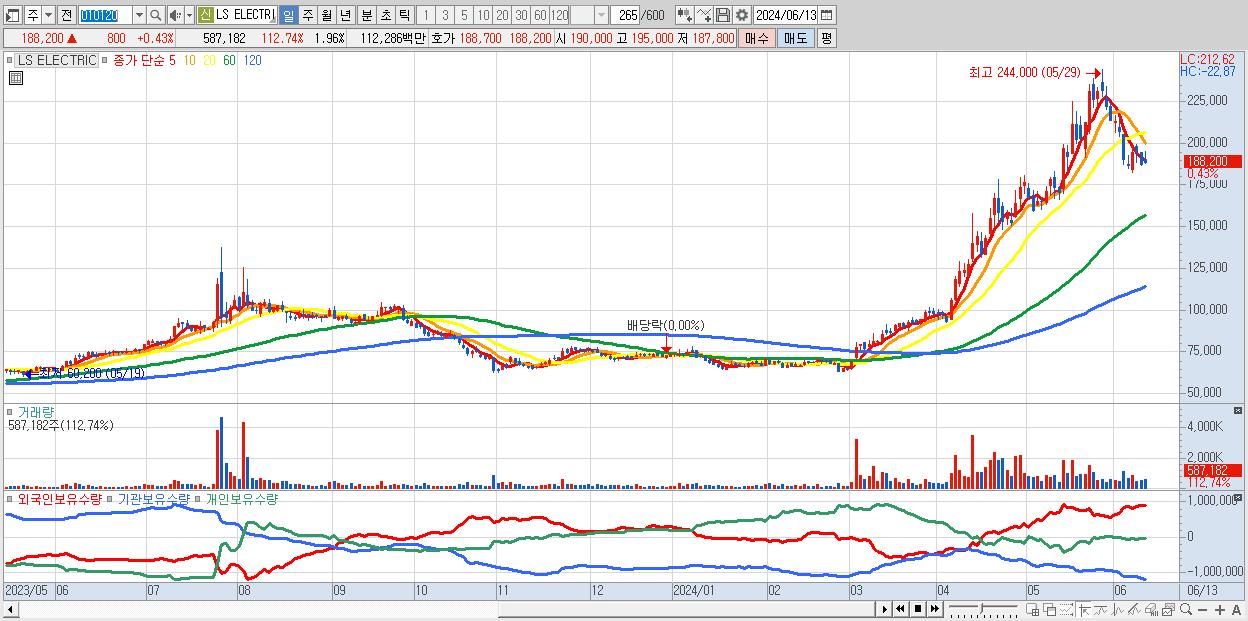 - LS ELECTRIC (188,200원 ▲ 0.43% , 시총: 56,460억, 외국인 순매수 거래금:81억)