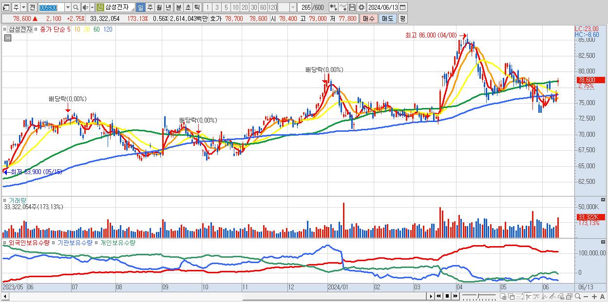 1.삼성전자 78,600원 ▲ 2.75% (KOSPI, 005930)