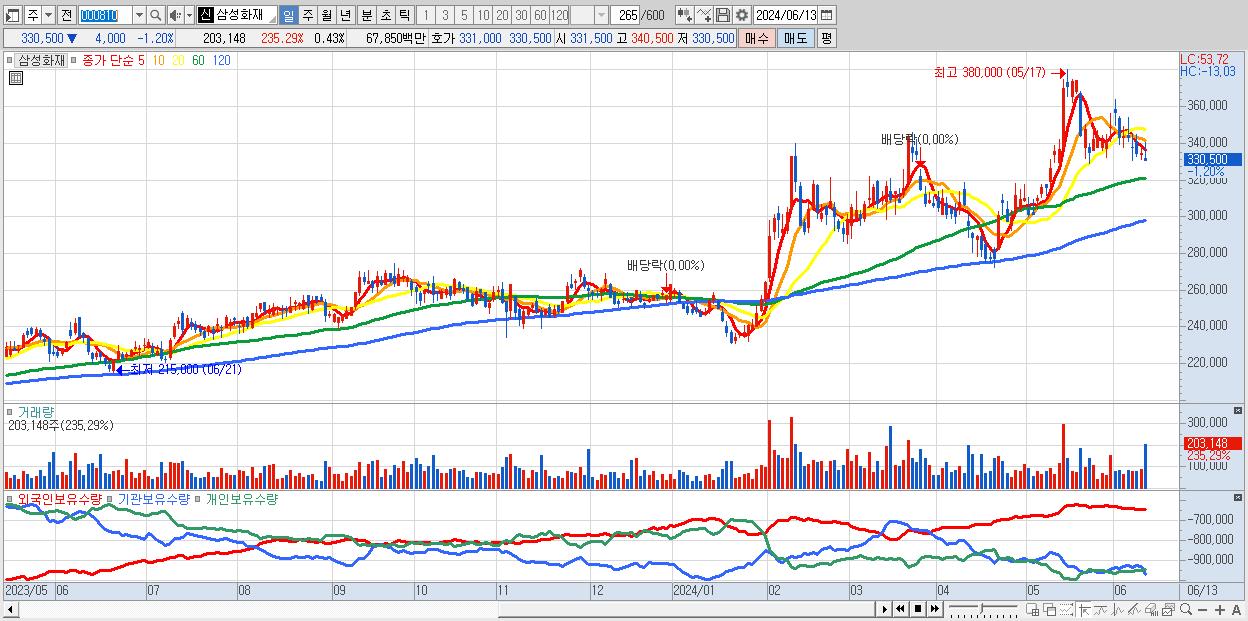- 삼성화재 (330,500원 ▼ -1.2% , 시총: 156,574억, 외국인 순매수 거래금:130억)